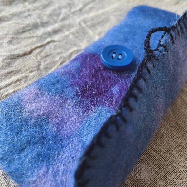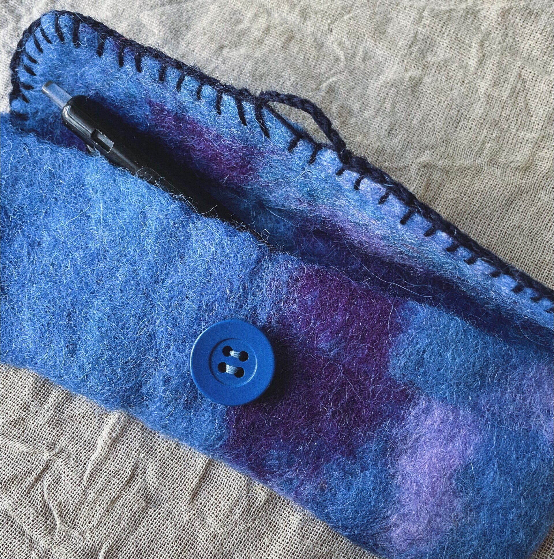 De wijnrode etui is 13,5x8cm. Leuk als naaietuitje. De blauw lila etui is 15x6cm. Een kleinere balpen zoals Bic past er wel in.