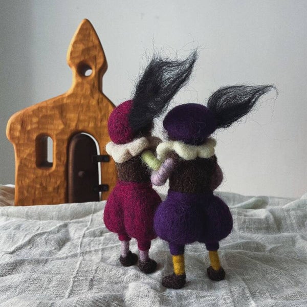 Dit Pietje is 13cm en heeft buigbare armen en benen.
