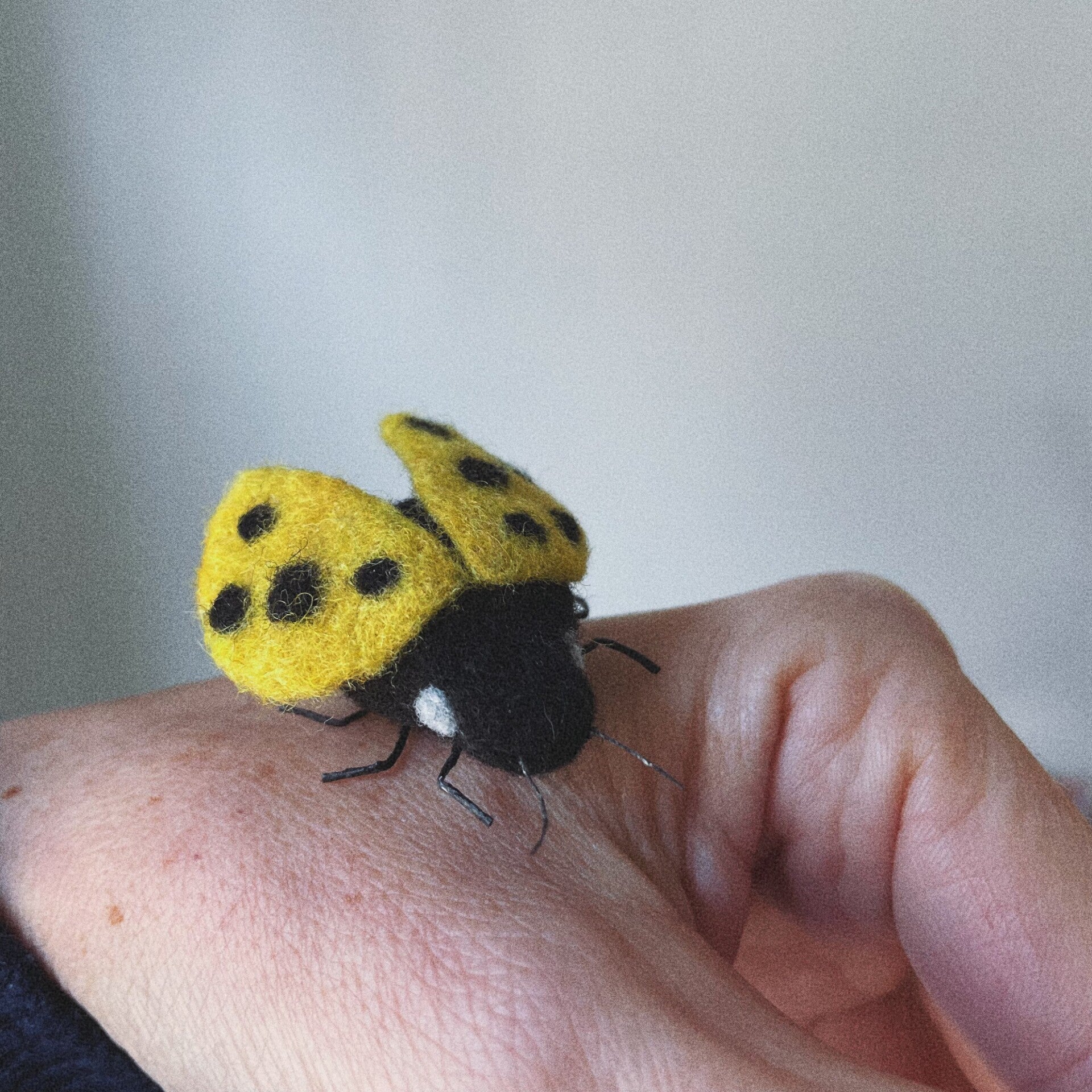 Dit lieveheersbeestje trok mijn aandacht, nadat ik al een aantal kevers gemaakt had. Dit lieveheersbeestje staat voor een nieuw begin. Het geel is van de groeiende zonnekrachten die we steeds meer zien en voelen.