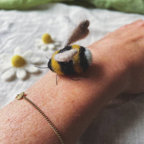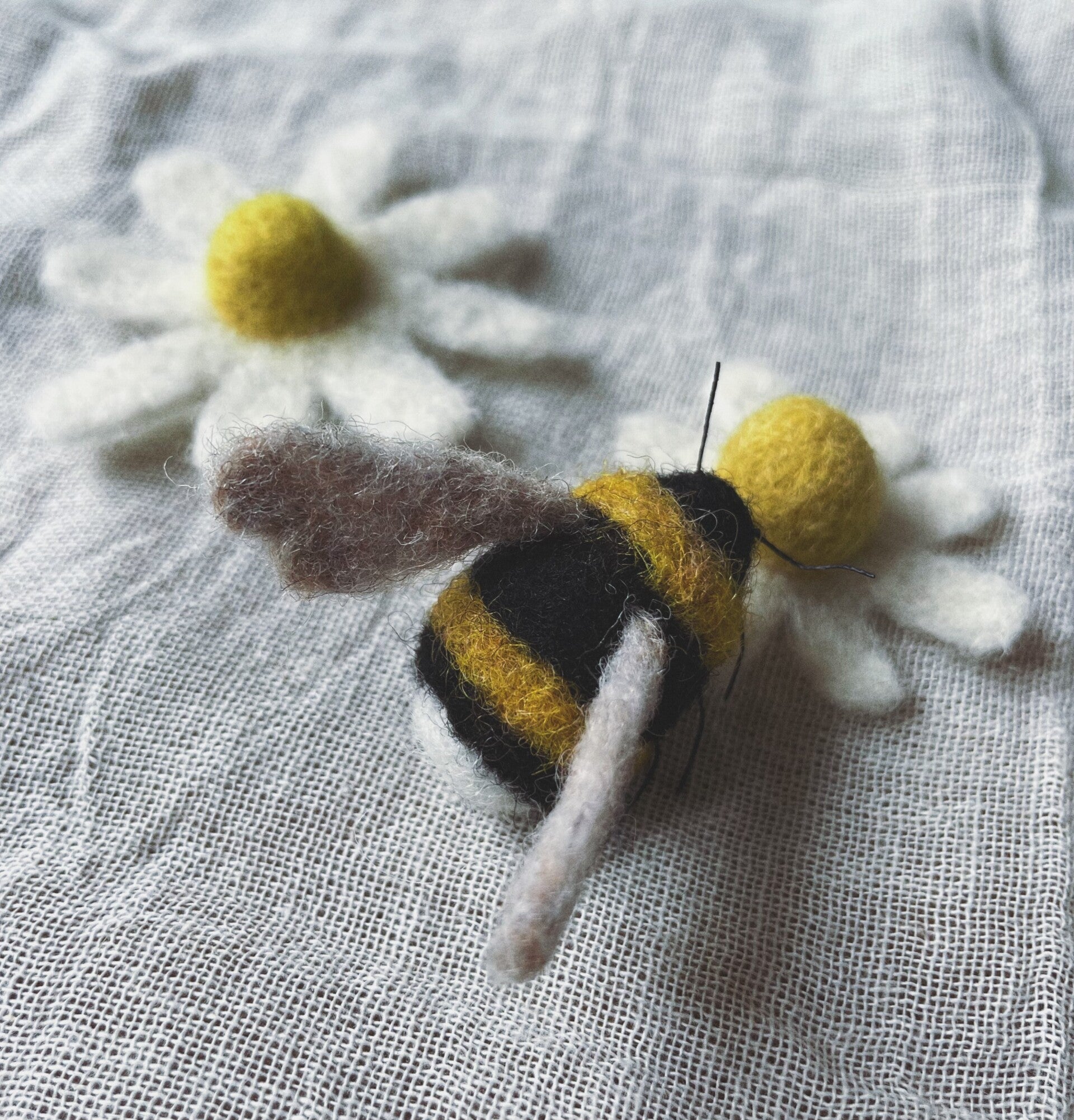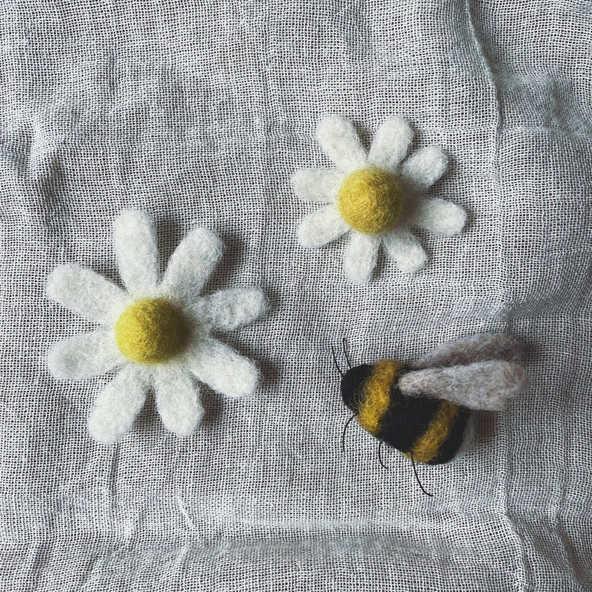 Dit hommeltje brengt ons de zomer (in huis). Samen met twee kamille bloemen. Prachtig op de seizoenentafel.