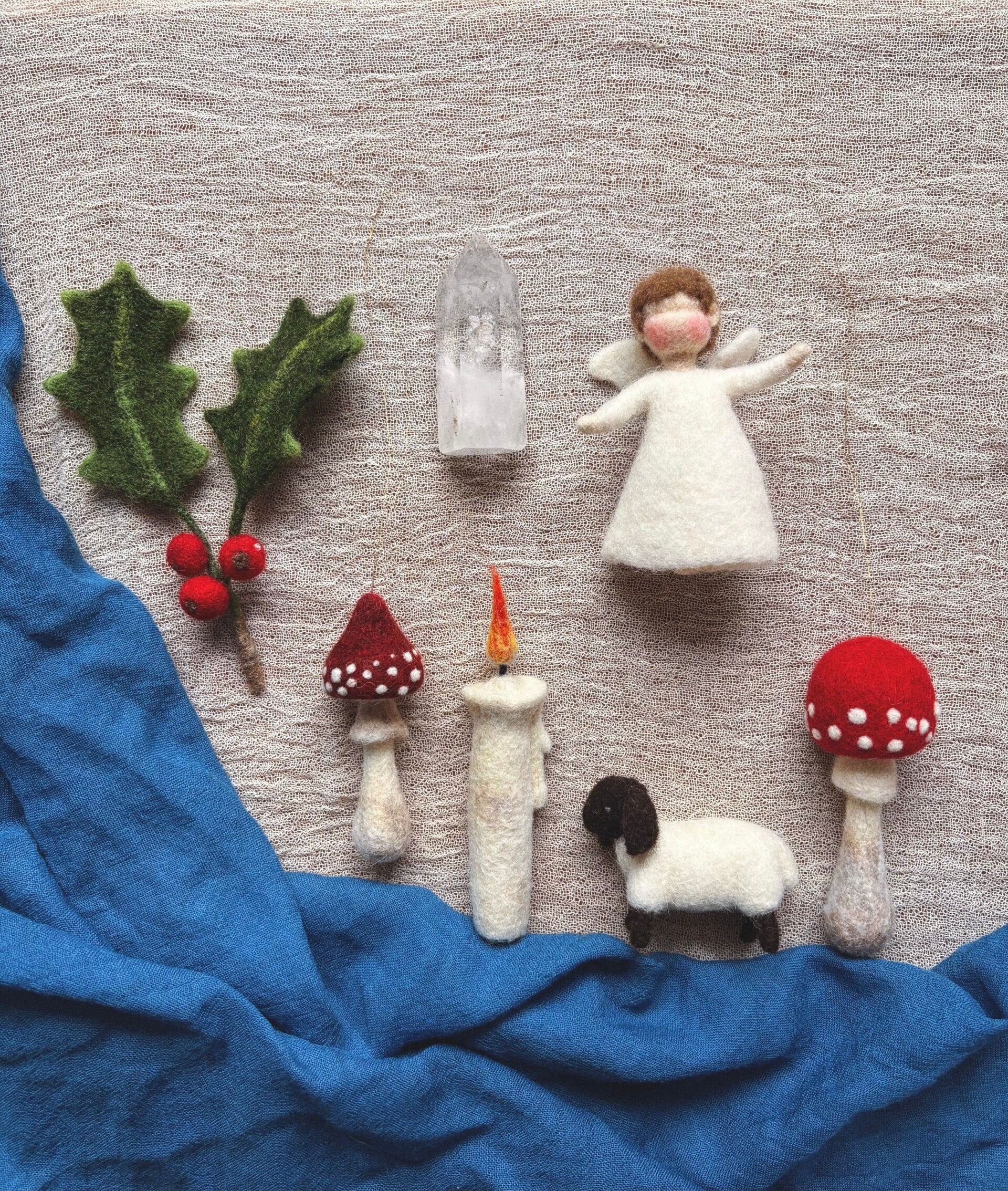 Dit wollen kaarsje met afneembaar vlammetje is 8cm. Het is het eerste (en kortste) kaarsje die ik maakte van dit concept, het lontje is niet helemaal strak van vorm (daarom iets lager geprijsd). Het kaarsje past in een feestring van Grimms. Tijdloos en eigenlijk altijd mooi op seizoenen tafel of altaar.